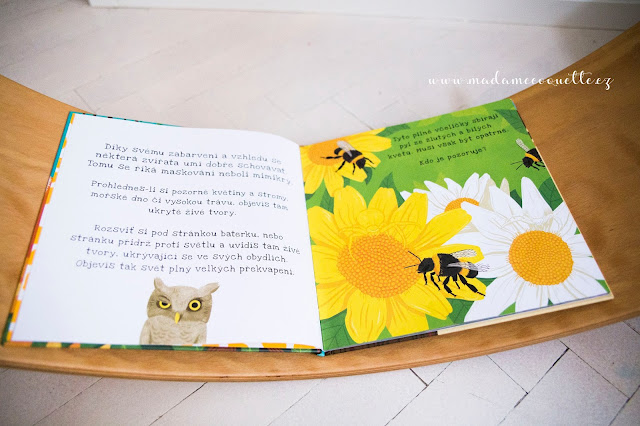 Kniha Tajemství zvířecího maskování zase dětem ukáže, jak a proč se zvířata v přírode maskují. Co není na první pohled tak zřetelné, objevíte po prosvícení stránky zespodu.